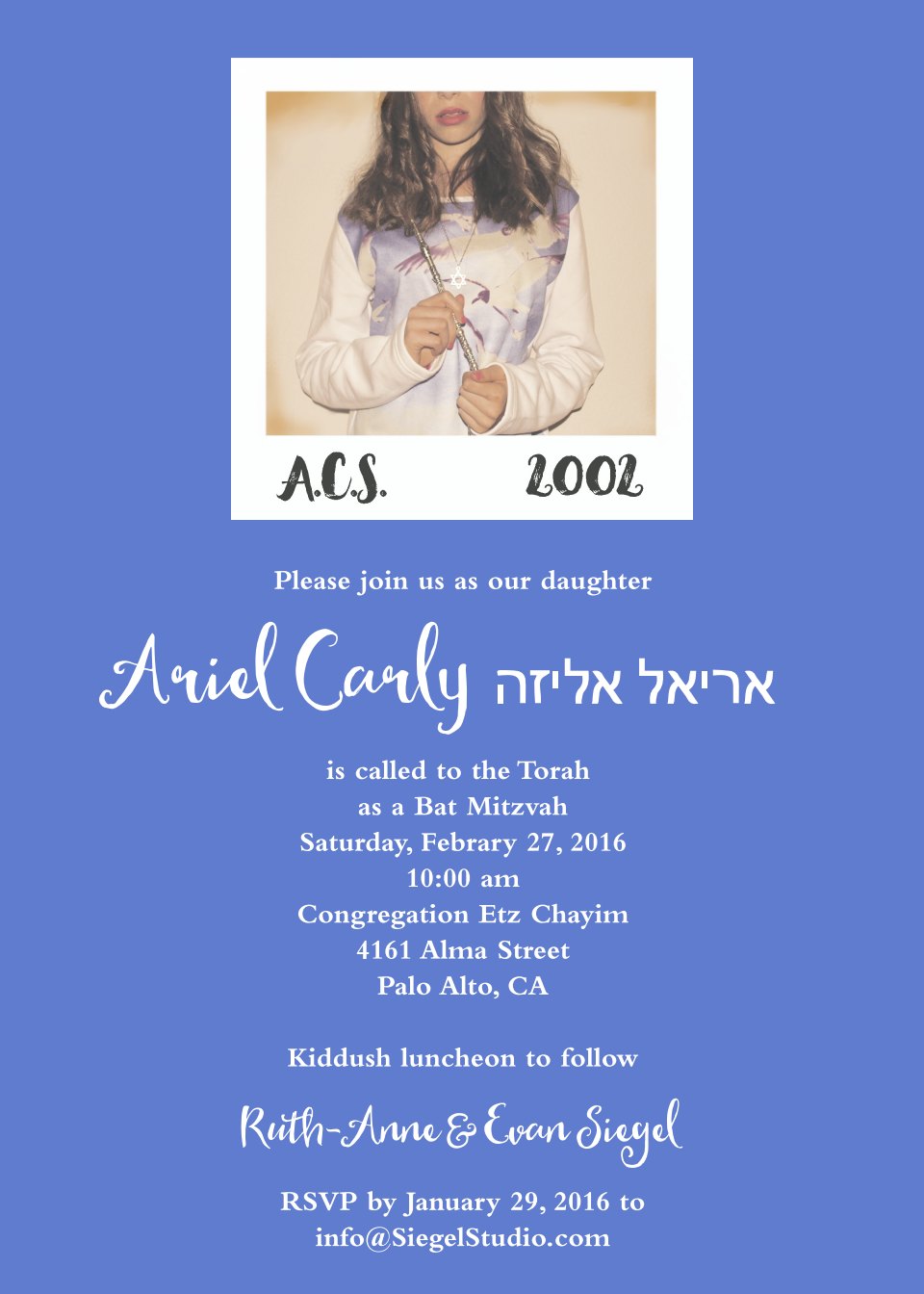Bat Mitzvah invitation with custom image based on Taylor Swift’s 1989 album cover